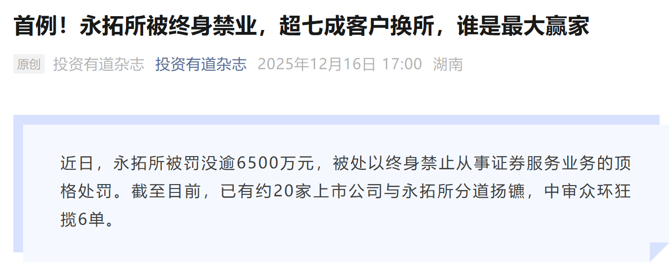 刚刚刷到这个消息,狮头的的前审计事务所被终生禁业了。然后今年12月的时候,有6家