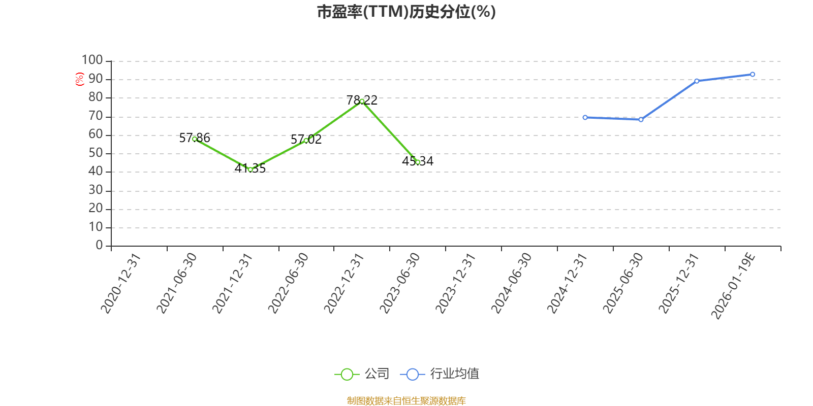 以本次披露业绩预告均值计算,公司近年市盈率(TTM)图如下所示: