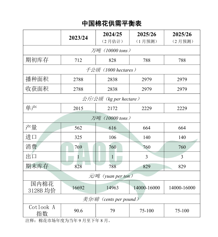 农业农村部发布2月供需报告,本月对中国棉花供需形势预测与上月保持一致。全国新棉加工接近尾声,纺织企业春节前备货积极,皮棉销售顺畅。据中国棉花网数据,截至2月5日,全国棉花加工率98.6%,同比减0.4个百分点,较过去四年均值增0.6个百分点;销售率65.7%,同比增22.5个百分点,较过去四年均值增27.1个百分点。