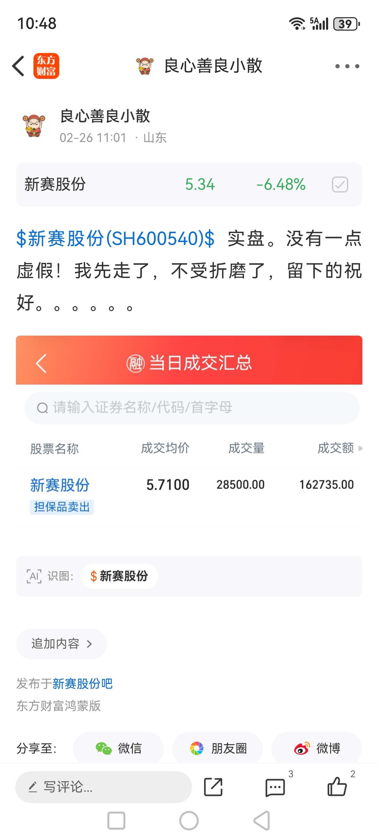 $新赛股份(SH600540)$ 还有不服的吗?。。。昨天近3万股走了!