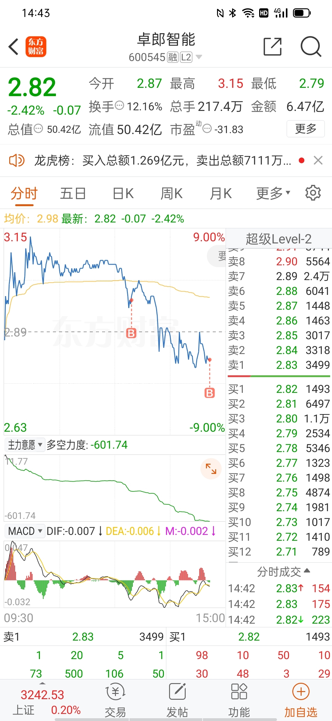 $卓郎智能(SH600545)$ 你敢跌,我就敢买,重仓干