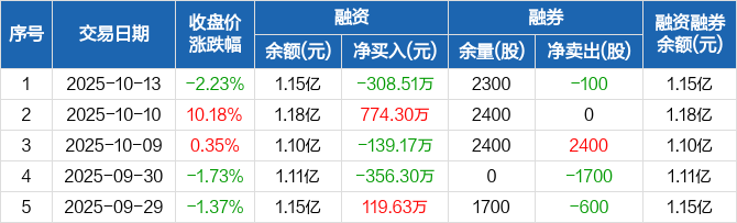 卓郎智能:融资净偿还308.51万元,融资余额1.15亿元(10-13)