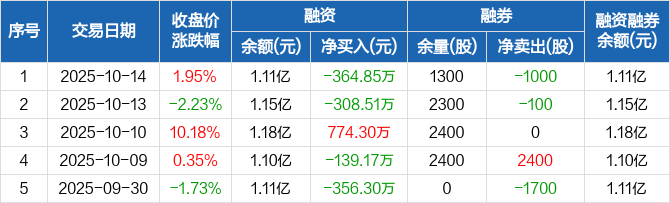 卓郎智能:融资净偿还364.85万元,融资余额1.11亿元(10-14)