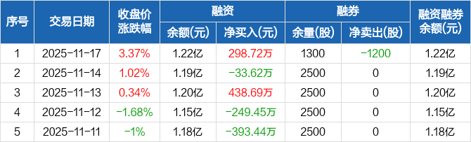卓郎智能:融资净买入298.72万元,融资余额1.22亿元(11-17)