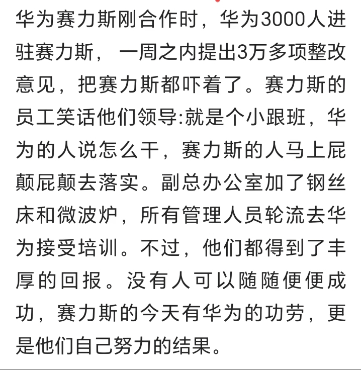 当年华为想和广汽合作被拒绝,重庆政府帮小康股份也就是现在的赛力斯牵头找的华为,连