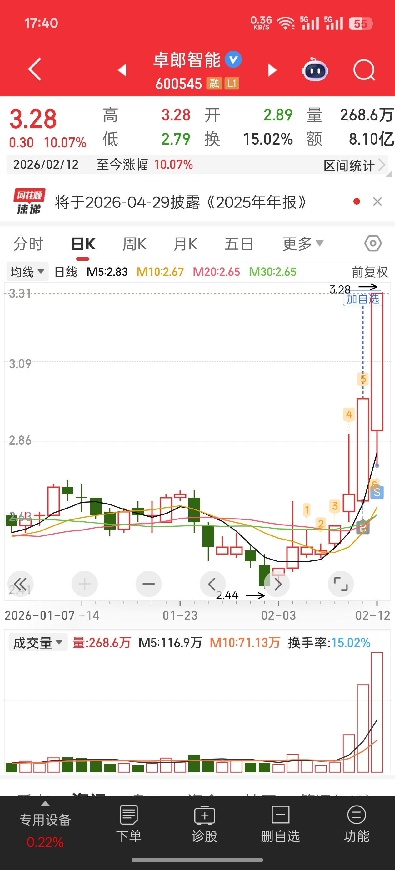 $卓郎智能(SH600545)$ 早上割肉下午就涨停?