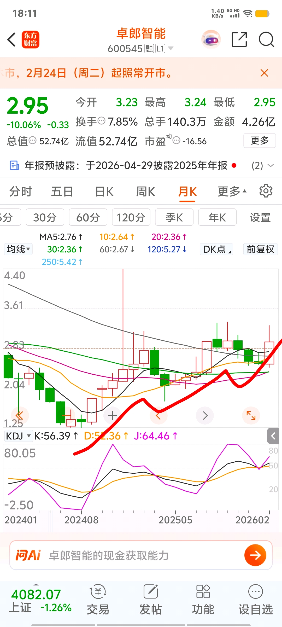 $卓郎智能(SH600545)$ 一两个地板不要怕,趋势非常好的票,周线月线底部上涨几个月回踩两个月再涨几个月回踩,这次第三次向上冲,月线至少几根大阳线,目前看到五块