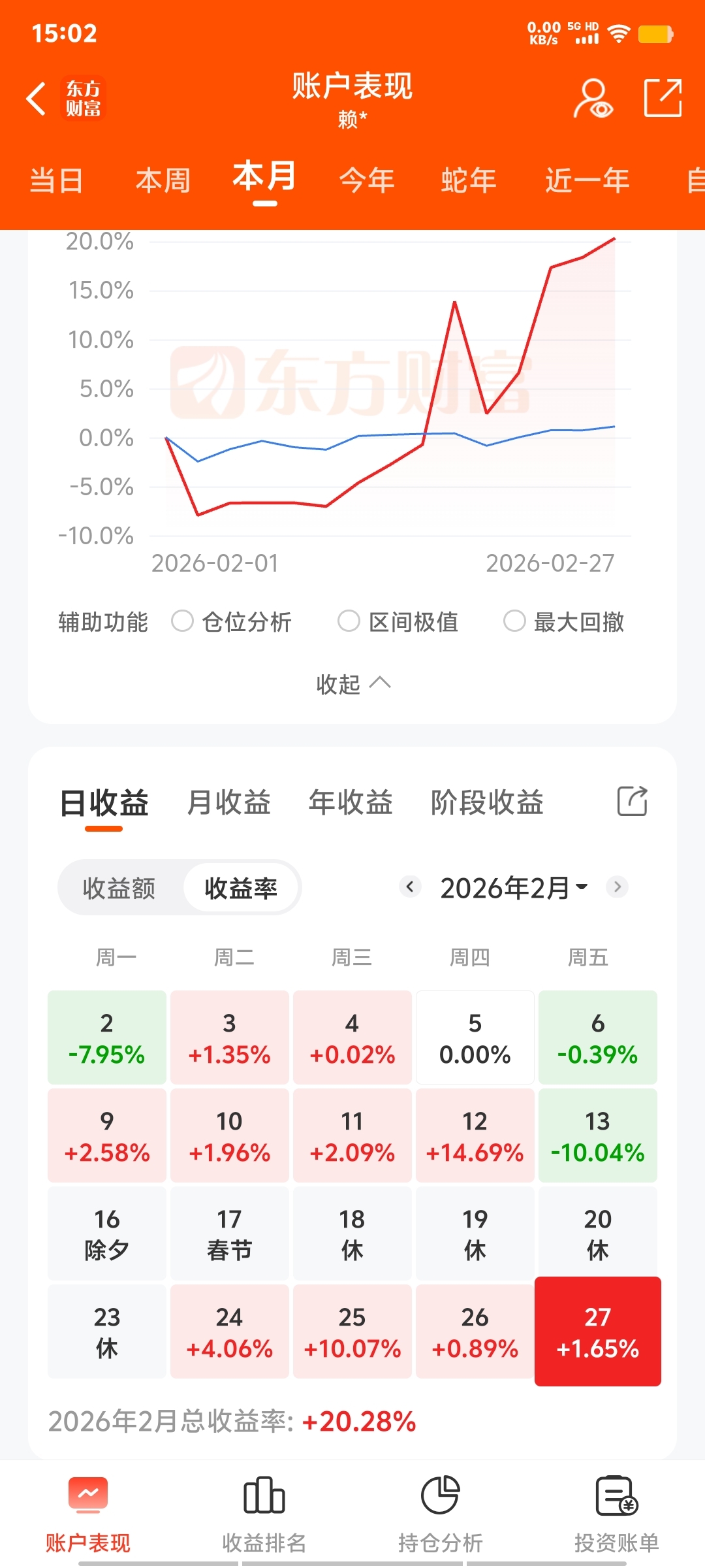 2月收官,战绩20个点开年连红4天,节奏在线,心态在线!不贪不躁,稳步向前。交易