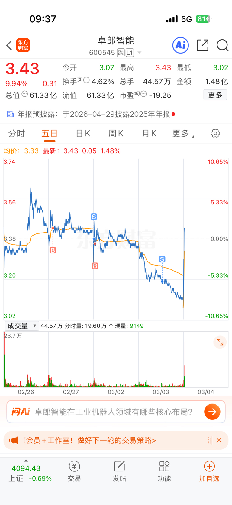 $卓郎智能(SH600545)$ 拜服,但这足以证明我的眼光没问题。就是心态急了点