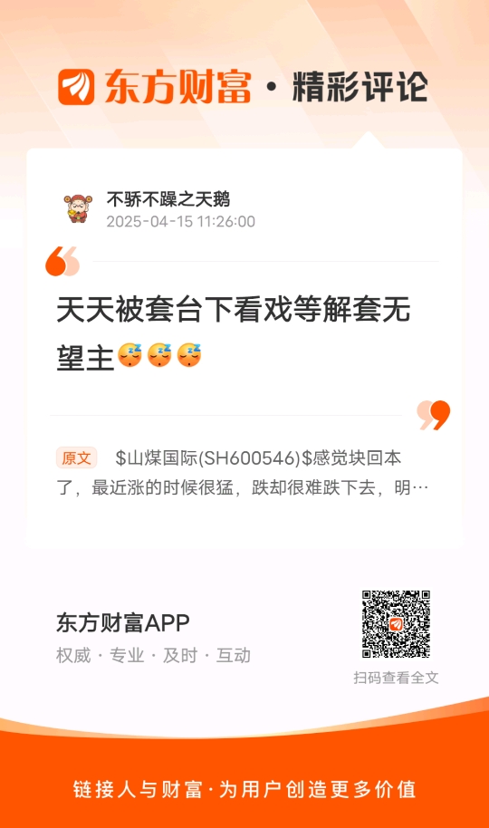 $山煤国际(SH600546)$//@不骄不躁之天鹅 :天天被套台下看戏等解套无望主
