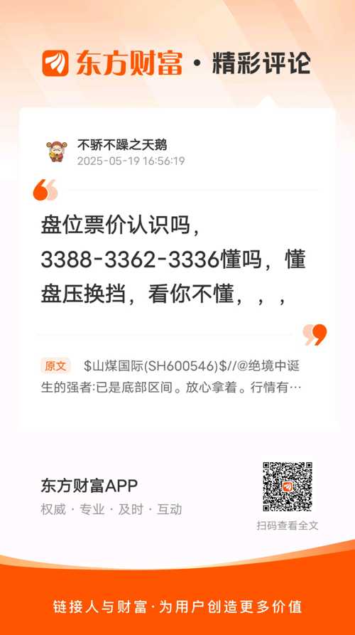 //@不骄不躁之天鹅 :$山煤国际(SH600546)$//@绝境中诞生的强者 :已是底部区间。放心拿着。行情有先后,个股有强弱。会补上了的。