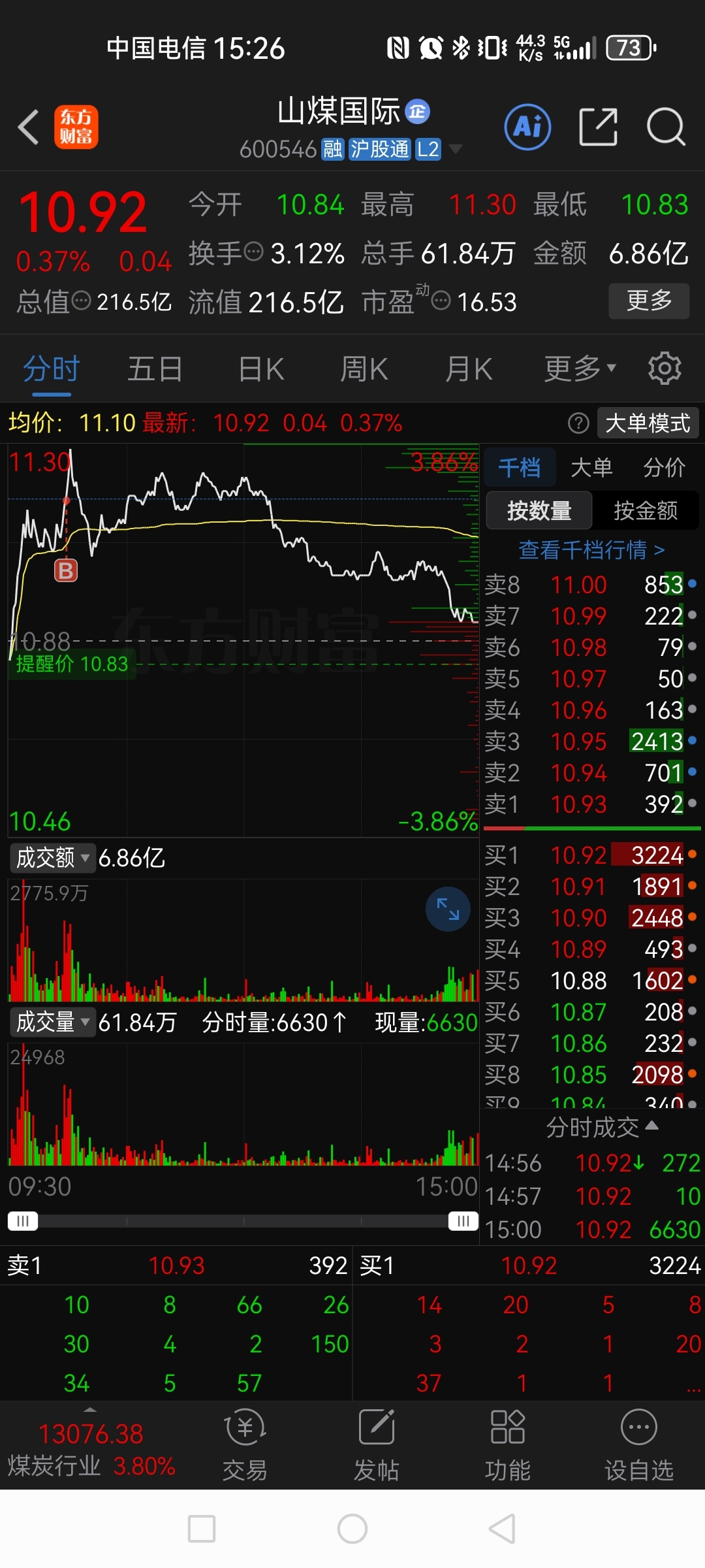 $山煤国际(SH600546)$ 倒霉,买的假煤这么好的热点不会炒作,板块大涨,换数翻红NM大跌,了