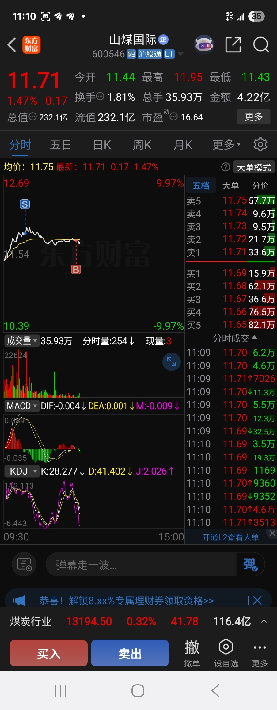 $山煤国际(SH600546)$ 不要让我失望 小机构给我拉涨停