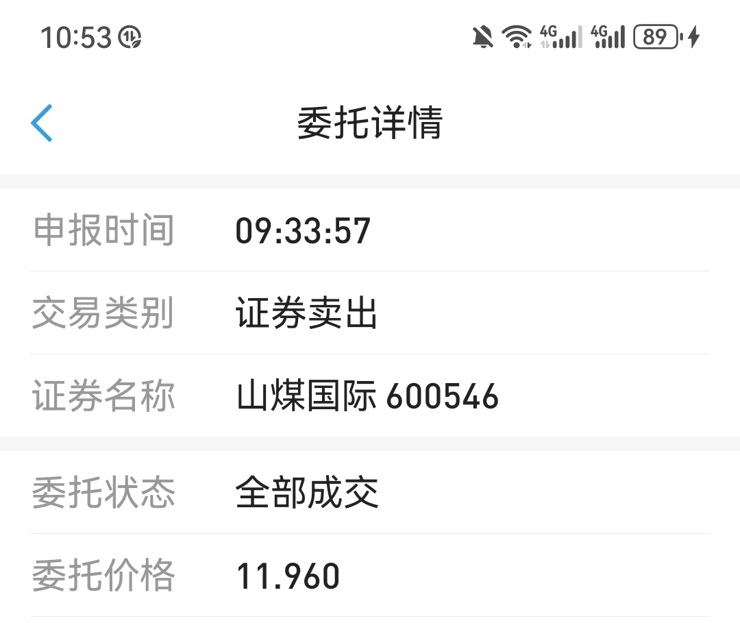 $山煤国际(SH600546)$ 今天终于成交了,昨天挂11.96,吝啬的操盘手最高打到11.95,不肯收货……今天前面最高到11.98,总算收下了11.96的单子……也不知道是不是卖便宜了,赚一点是一点,如果有机会再回到买点,就拿回这一部分筹码……