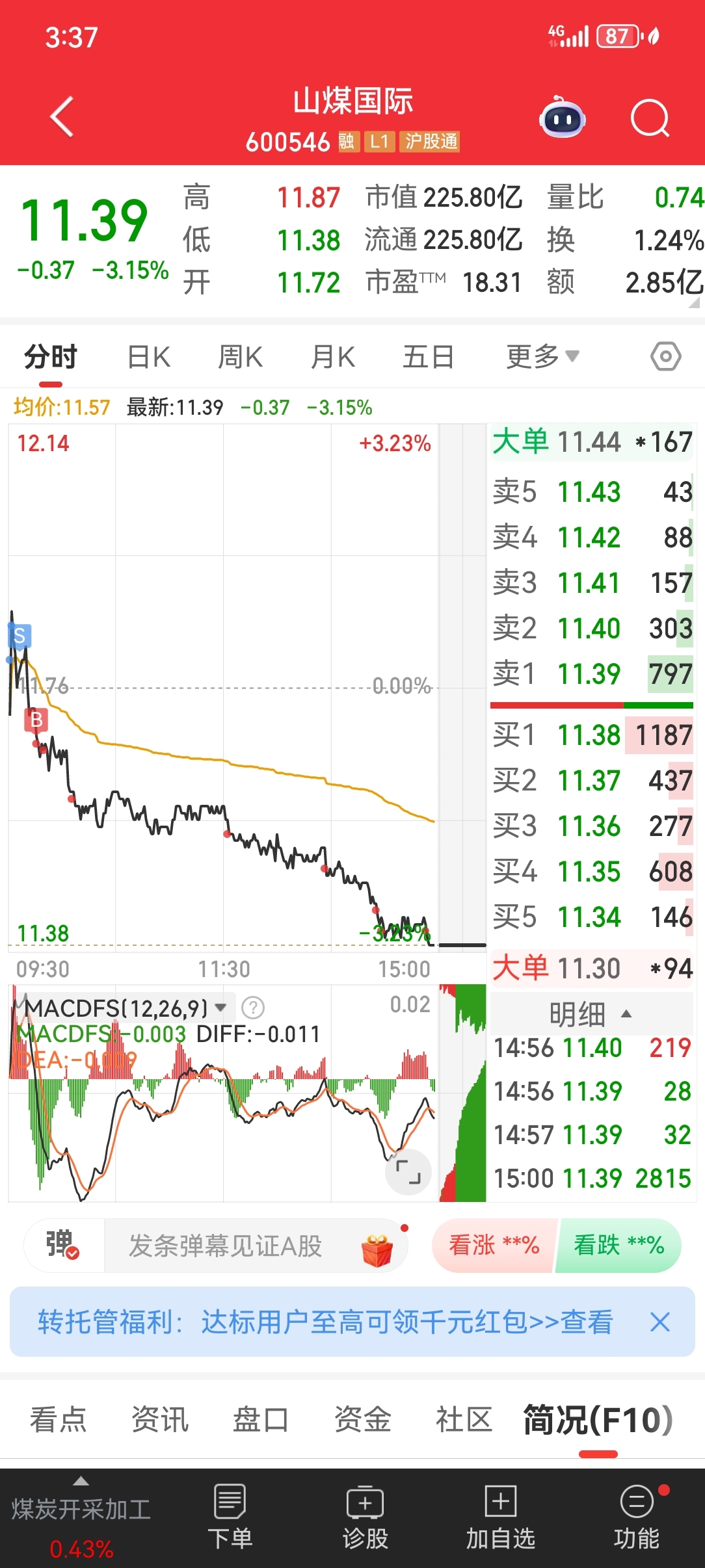 $山煤国际(SH600546)$ 希望主力不要看到我这三瓜两枣