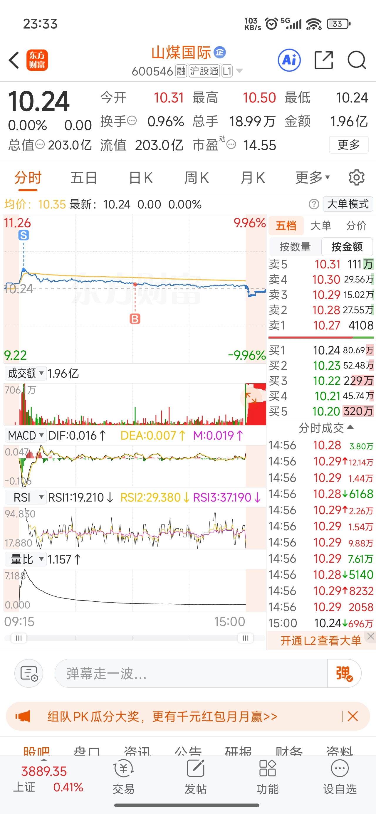 $山煤国际(SH600546)$ T个高潮,橾时还是没插到底!尾盘竞价牛批啊10.15起,一分都不给你涨!像前几天平盘收的样子看来还是要找父多阿!