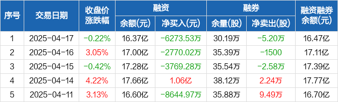 山东黄金:融资净偿还6273.53万元,两市排名第18(04-17)