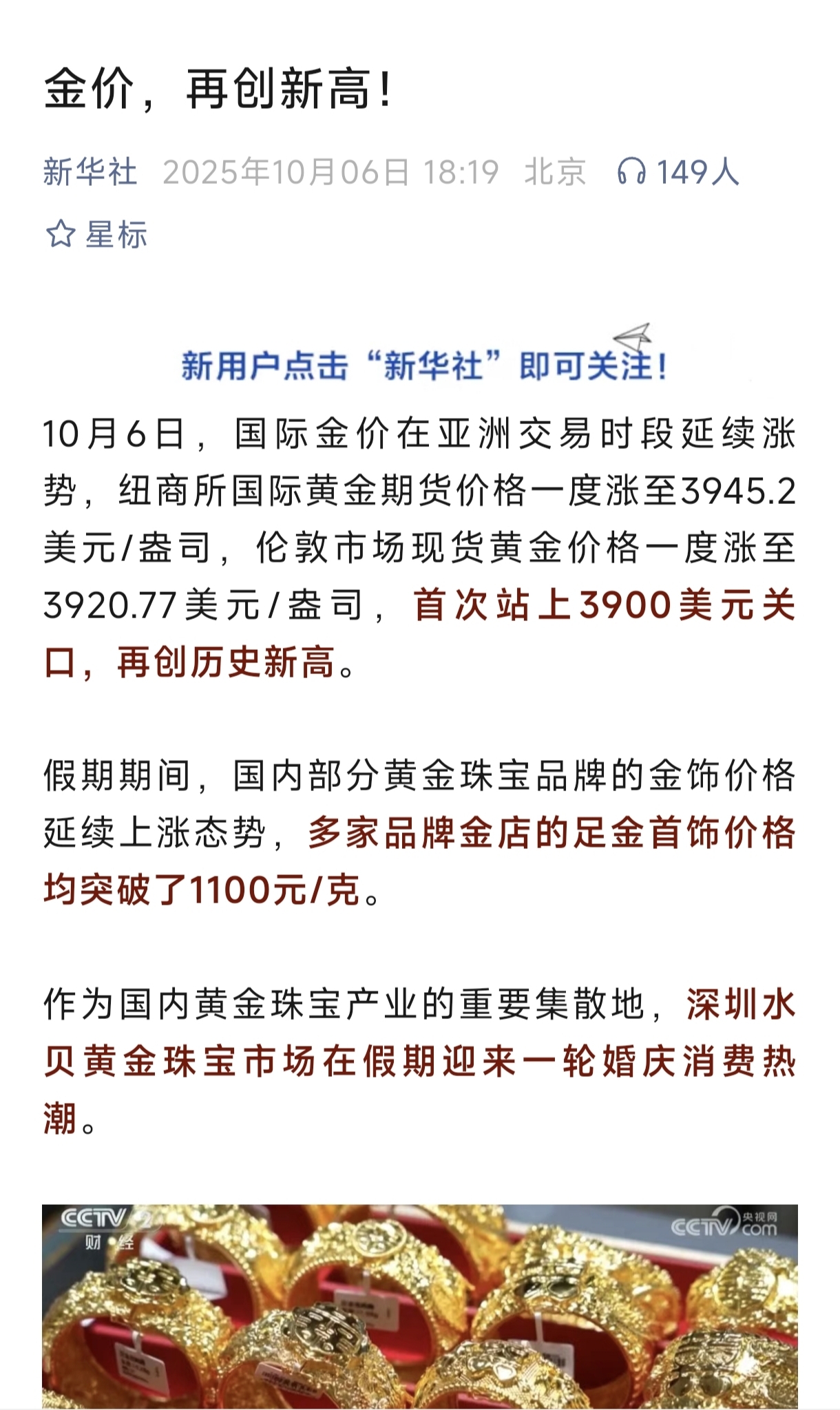 【现货黄金向上触及3930美元/盎司,年内累涨50%】 现货黄金向上触及3940美元/盎司,日内涨1.38%,年内累涨逾50%。再创历史新高。