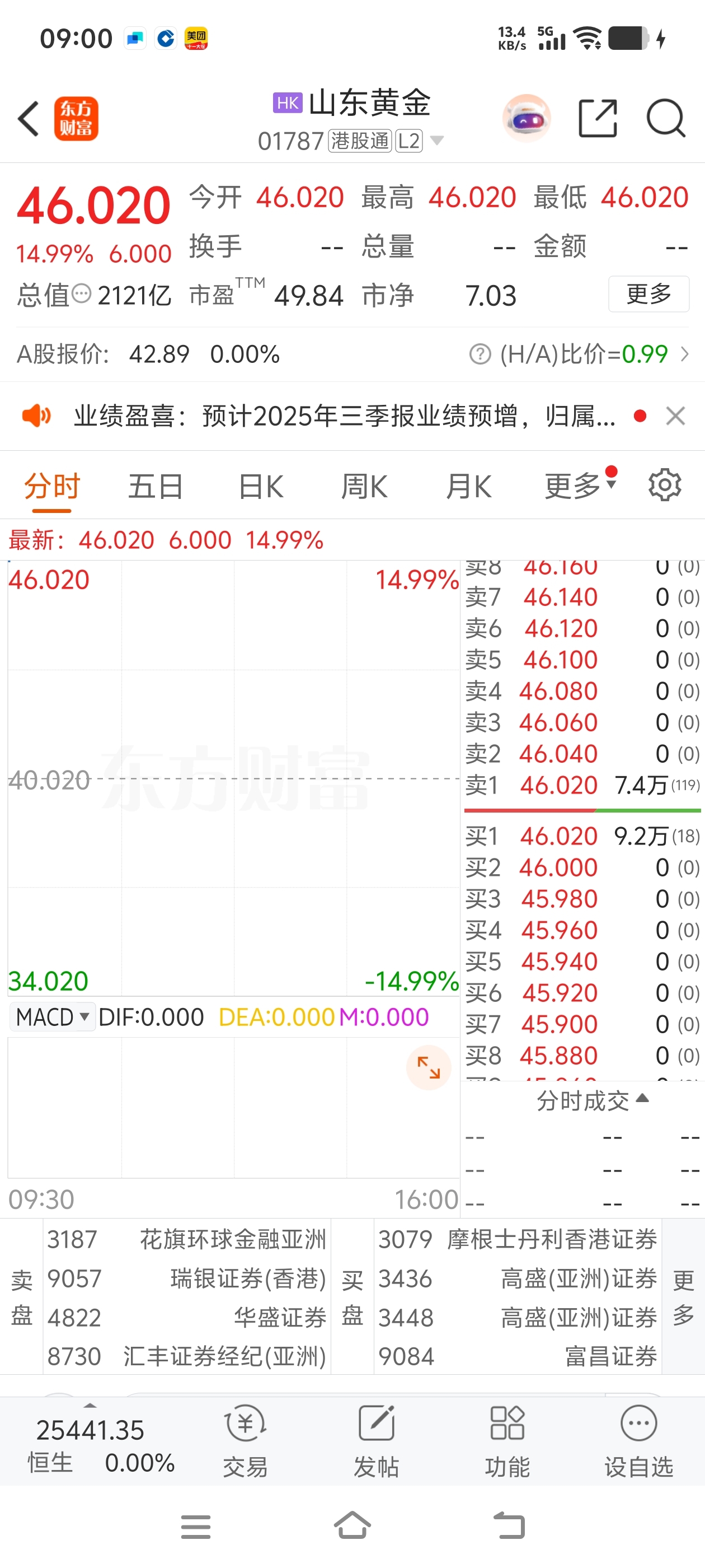 $山东黄金(SH600547)$ 港股涨15%,今天山东黄金涨停