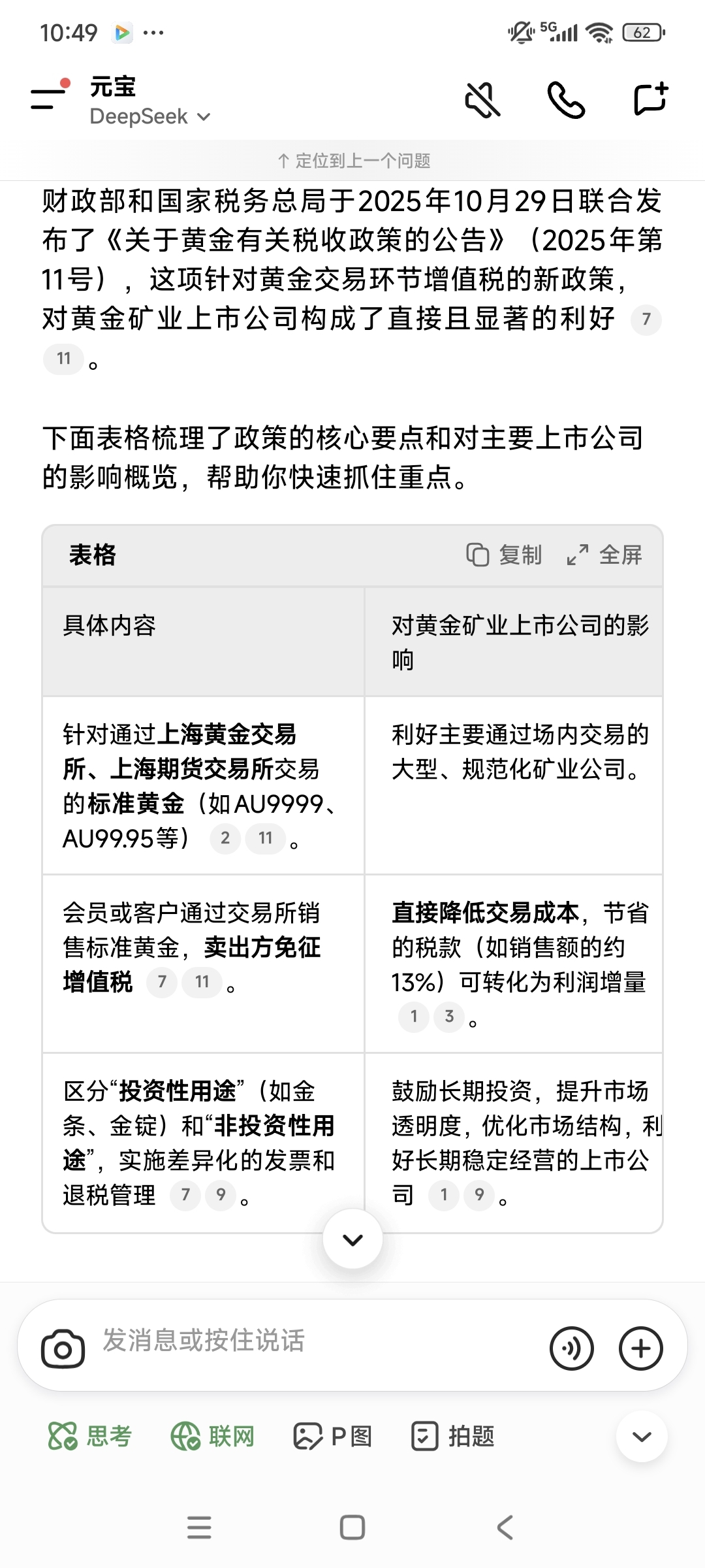 $山东黄金(SH600547)$ 刚发布的黄金税收政策利好矿业股