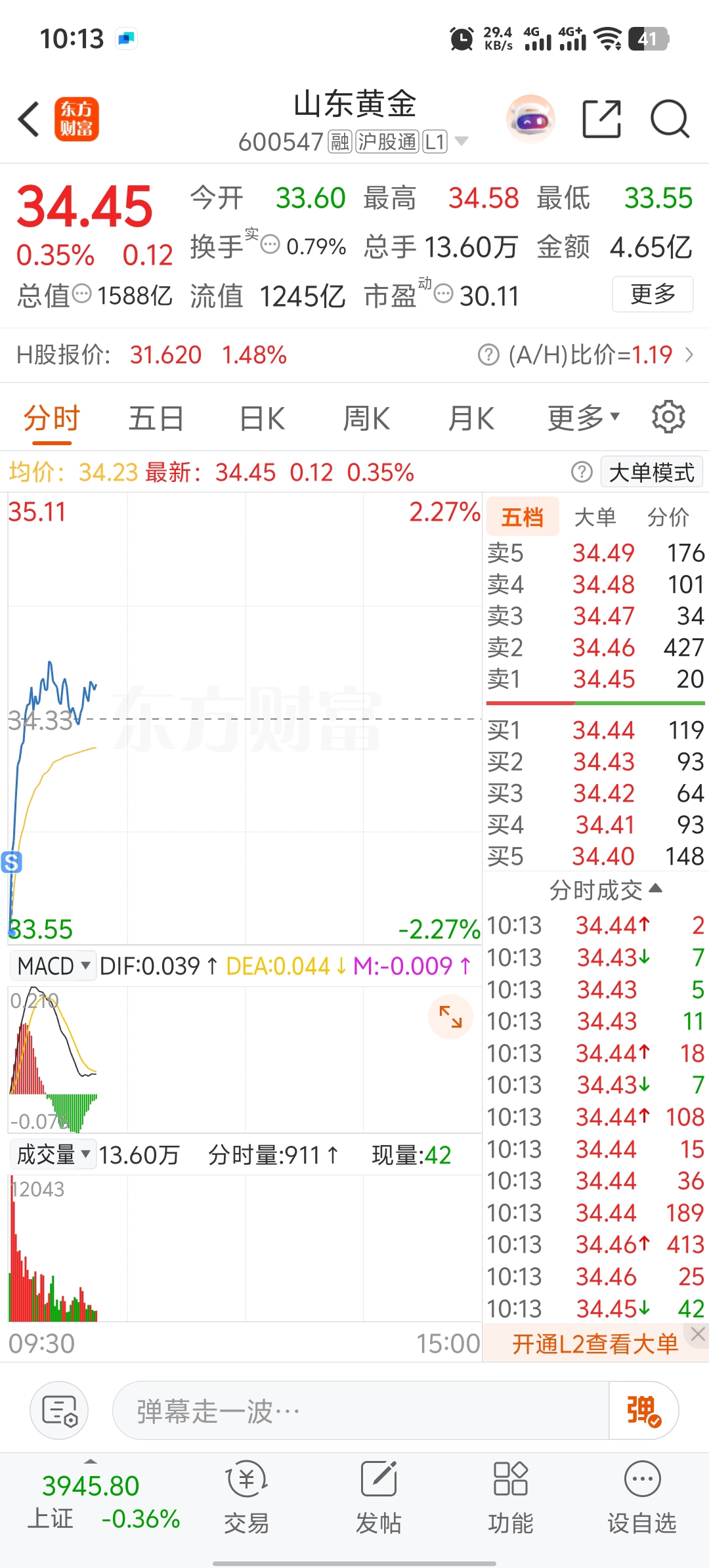 $山东黄金(SH600547)$ 麻蛋,成功把我洗出去了