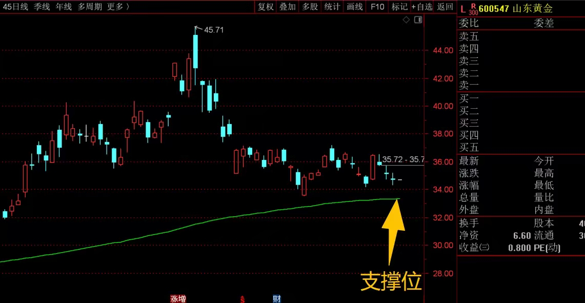 $山东黄金(SH600547)$ 近期走势不太好看,前期冲高回落后一直没有涨起来,比较弱势,接下来再回落就看脚底大均线33.35位置的支撑,防着有效跌破,同时拉起来的话先看安全线38.95位置的压力,带量站稳才有戏,不然都是冲高回落的走势,不能追高。
