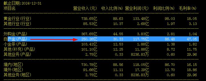 24年自产金250亿,25年价格算400亿,26年应该不低于500亿,只是涨价部