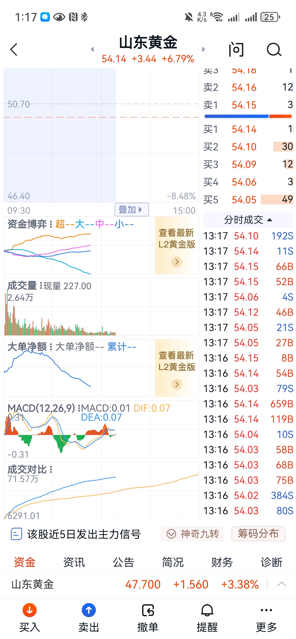 $山东黄金(SH600547)$ 相差一毛多的卖出