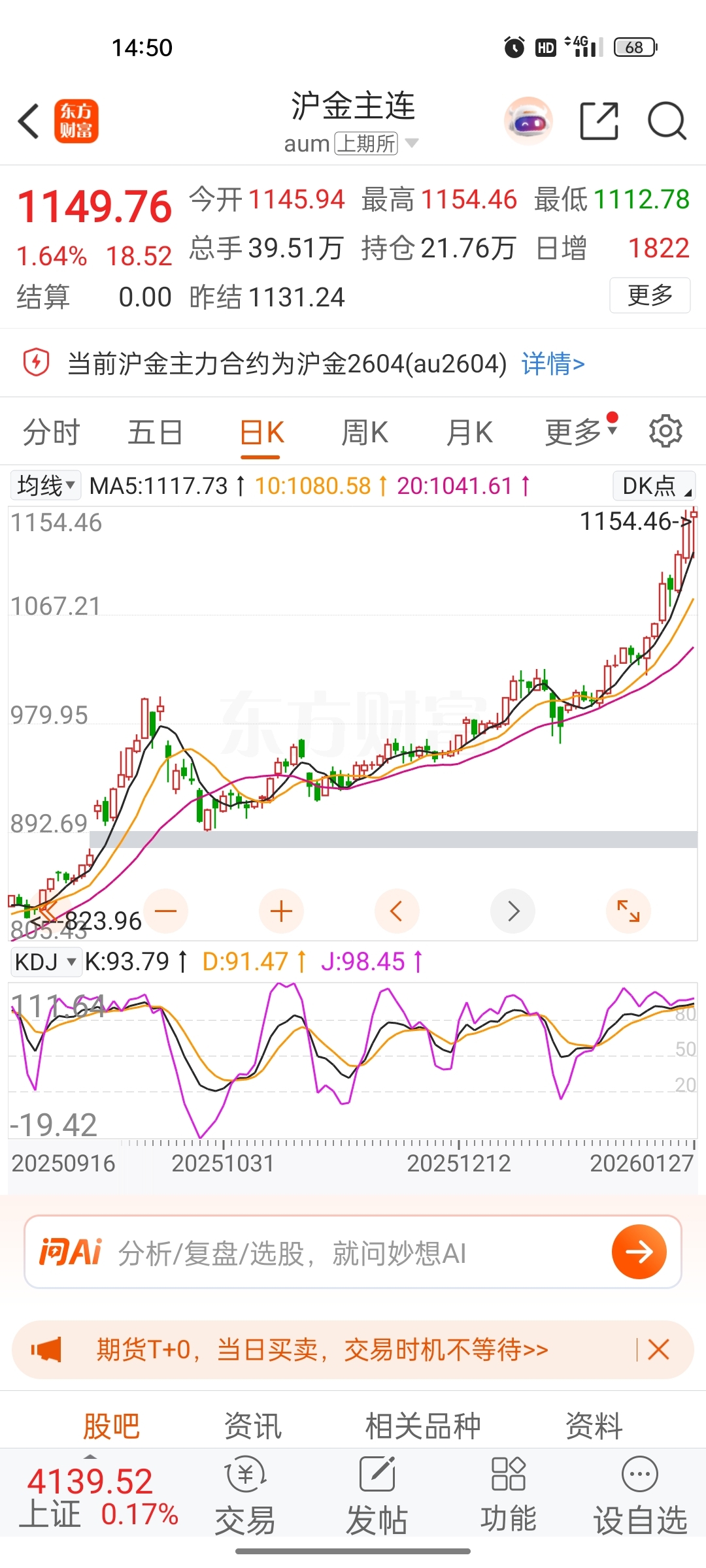 沪金再创新高,山东黄金今天调整结束,明天大涨,立帖为证