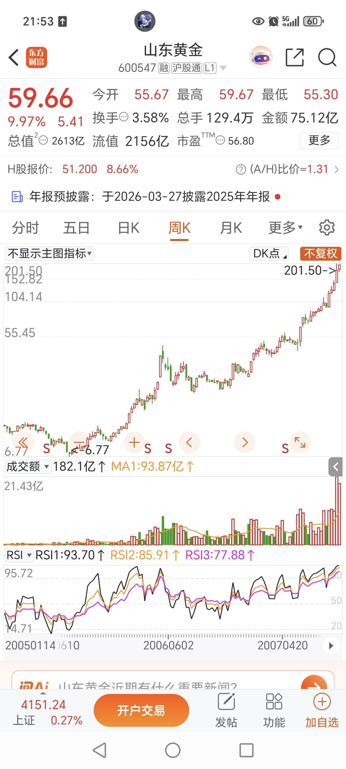 $山东黄金(SH600547)$ 大家还记得2007年黄金股的疯狂吗?