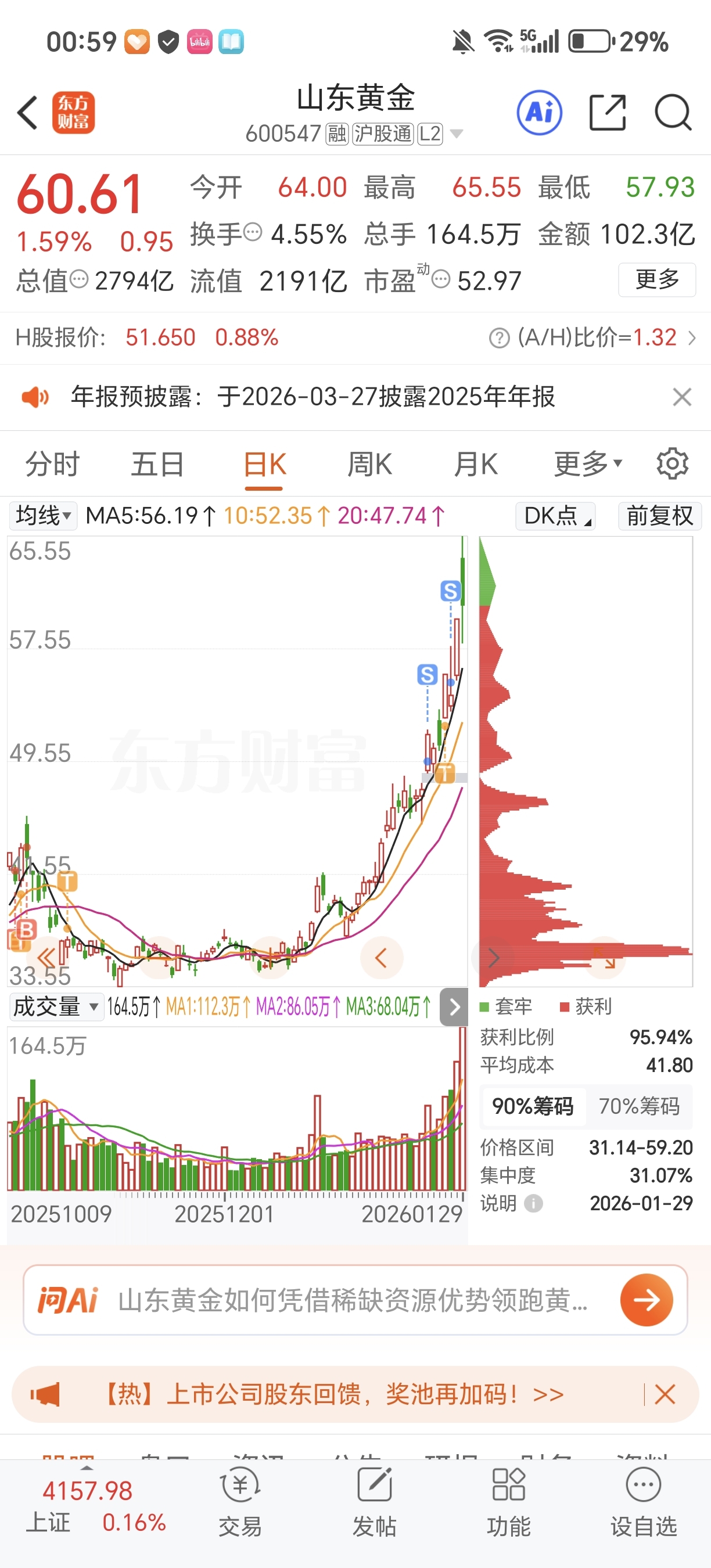 少吃一个板,清仓均价54.7,让利给兄弟们了,劝大家不要做赌徒,要找确定性。