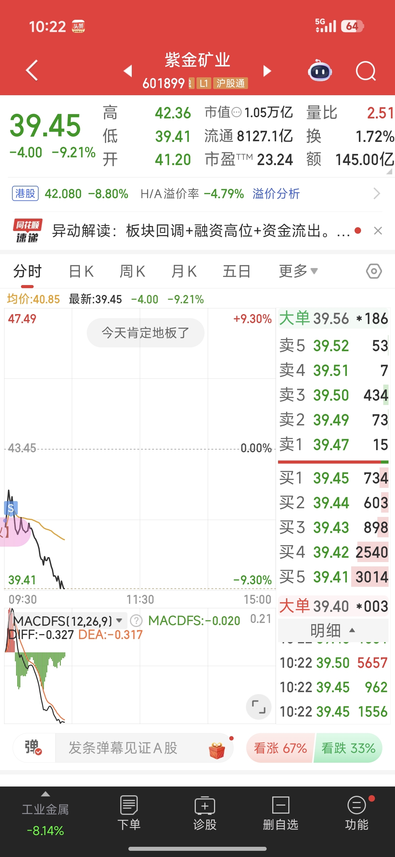 $山东黄金(SH600547)$ 俩家公司 恶意操纵股价,27日严重背离贵金属板块指数一家背离-10%,山东黄金背离-6%。29日又严重背离贵金属板块指数一家背离-8%,一家背离-6%。关键是整个贵金属板块就这两家严重背离,有联手作案嫌疑?只有实名举报,让证监会调查给一个说法,出现那么大的买盘,请问砸盘的筹码从哪里来的?不只是散户在买,国际资本也出现在别的金矿股龙虎榜里。是不是为了赴港上市的价格已经定好?让沪市价格与赴港上市价格相差不大,故意操纵?只有让证监会给一个说法了。实名举报才会有书面答复。