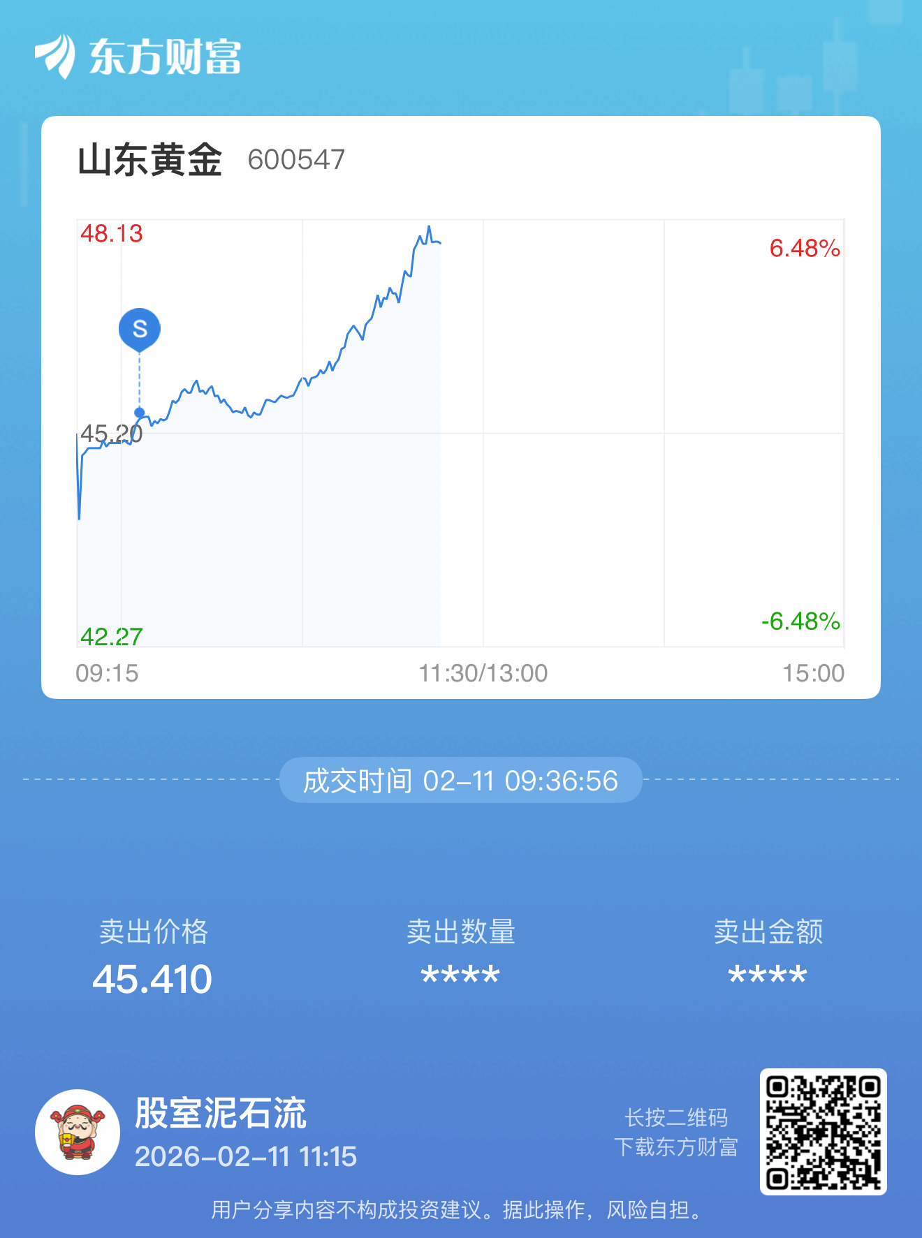 $山东黄金(SH600547)$ 我承认我卖飞了