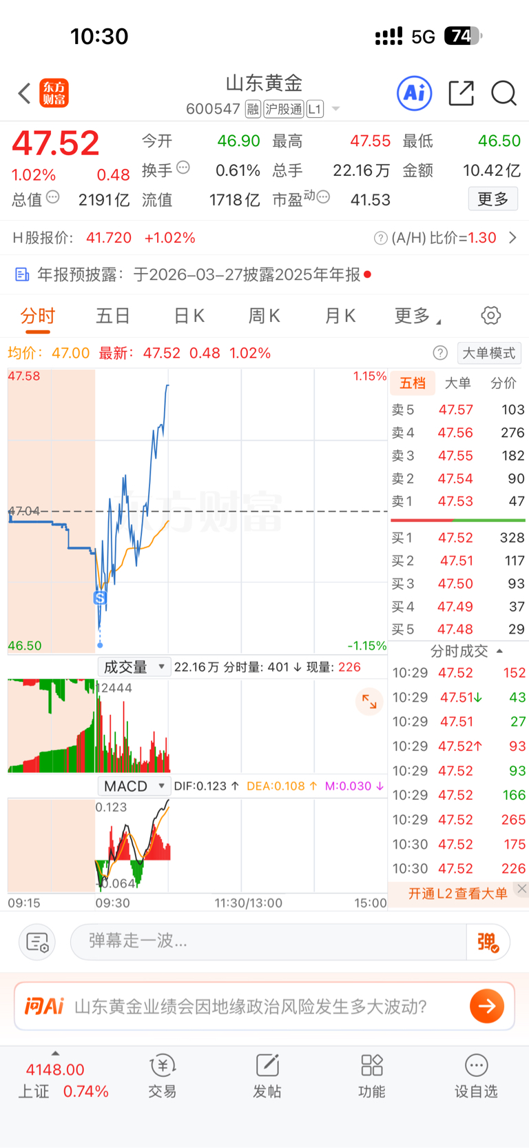 $山东黄金(SH600547)$ 说谢谢!我一卖就涨
