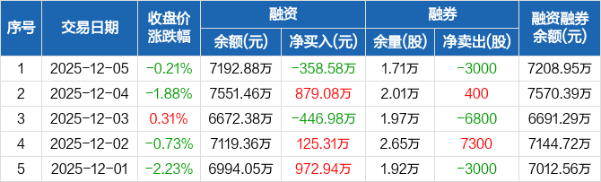 深高速:融资净偿还358.58万元,融资余额7192.88万元(12-05)
