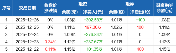 深高速:融资净偿还302.58万元,融资余额1.08亿元(12-26)