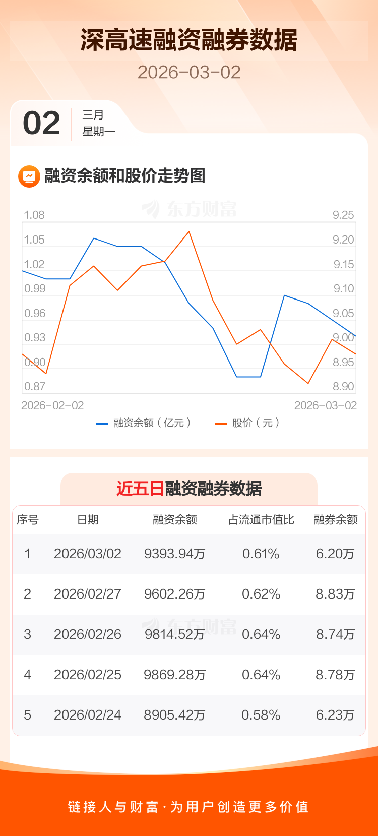 交易所最新数据显示,深高速于2026年3月2日获融资买入376.74万元,融资偿还585.05万元,当日融资净偿还208.31万元。目前,该股融资余额9393.94万,占流通市值比例为0.61%。