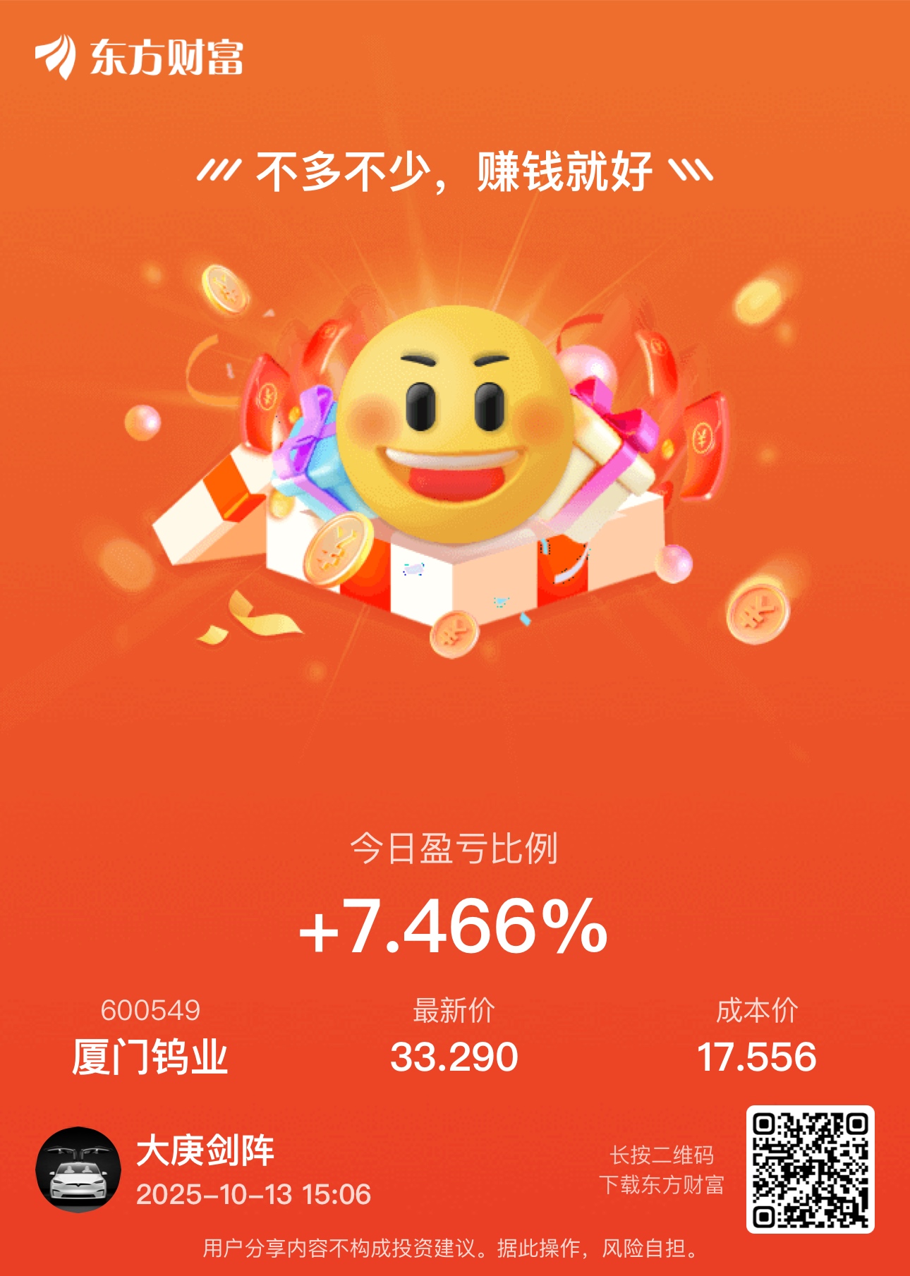 $厦门钨业(SH600549)$ 已加到9层仓位,希望继续高歌猛进