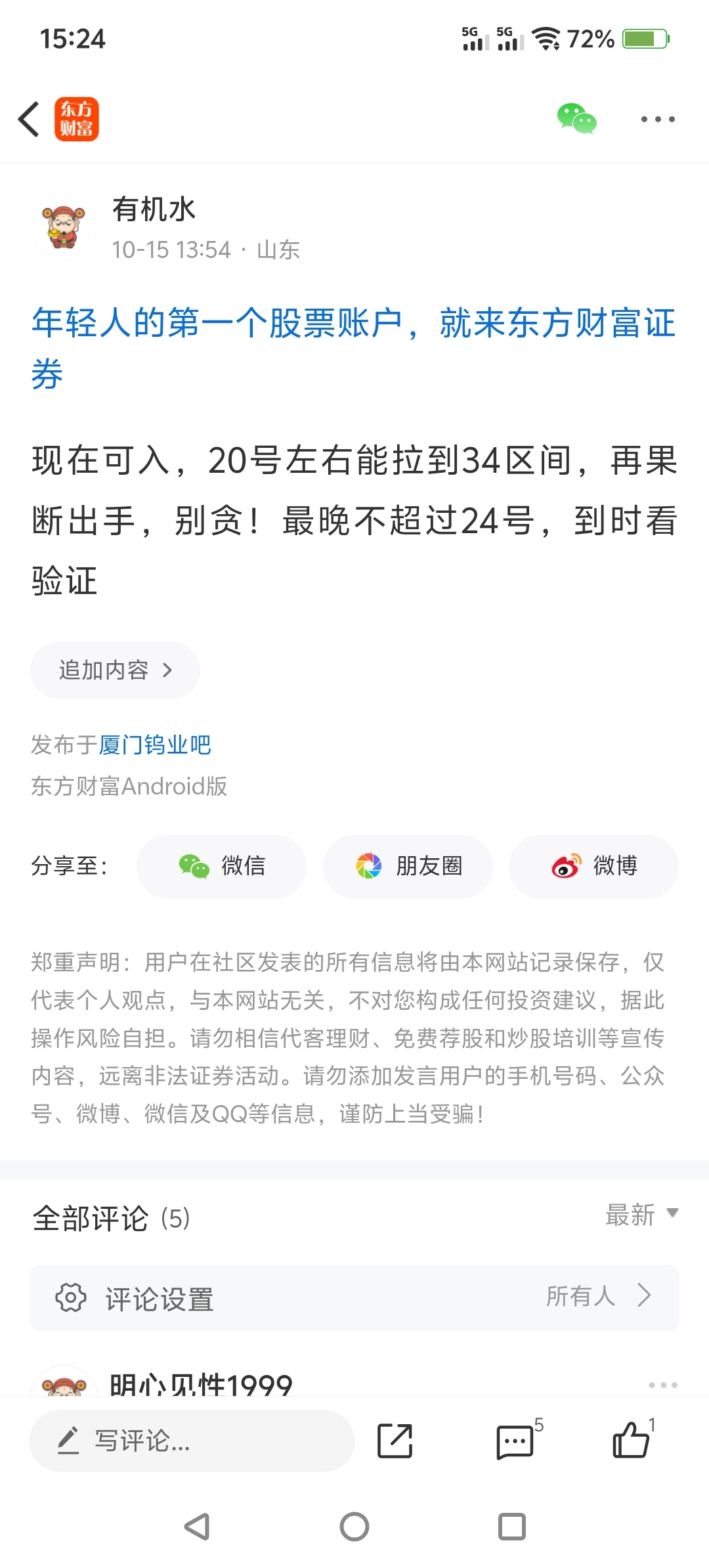 温馨提示: 1.根据《证券法》规定,禁止编造、传播虚假信息或者误导性信息,扰乱证券市场;2.用户在本社区发表的所有资料、言论等仅代表个人观点,与本网站立场无关,不对您构成任何投资建议。用户应基于自己的独立判断,自行决定证券投资并承担相应风险。《东方财富社区管理规定》
