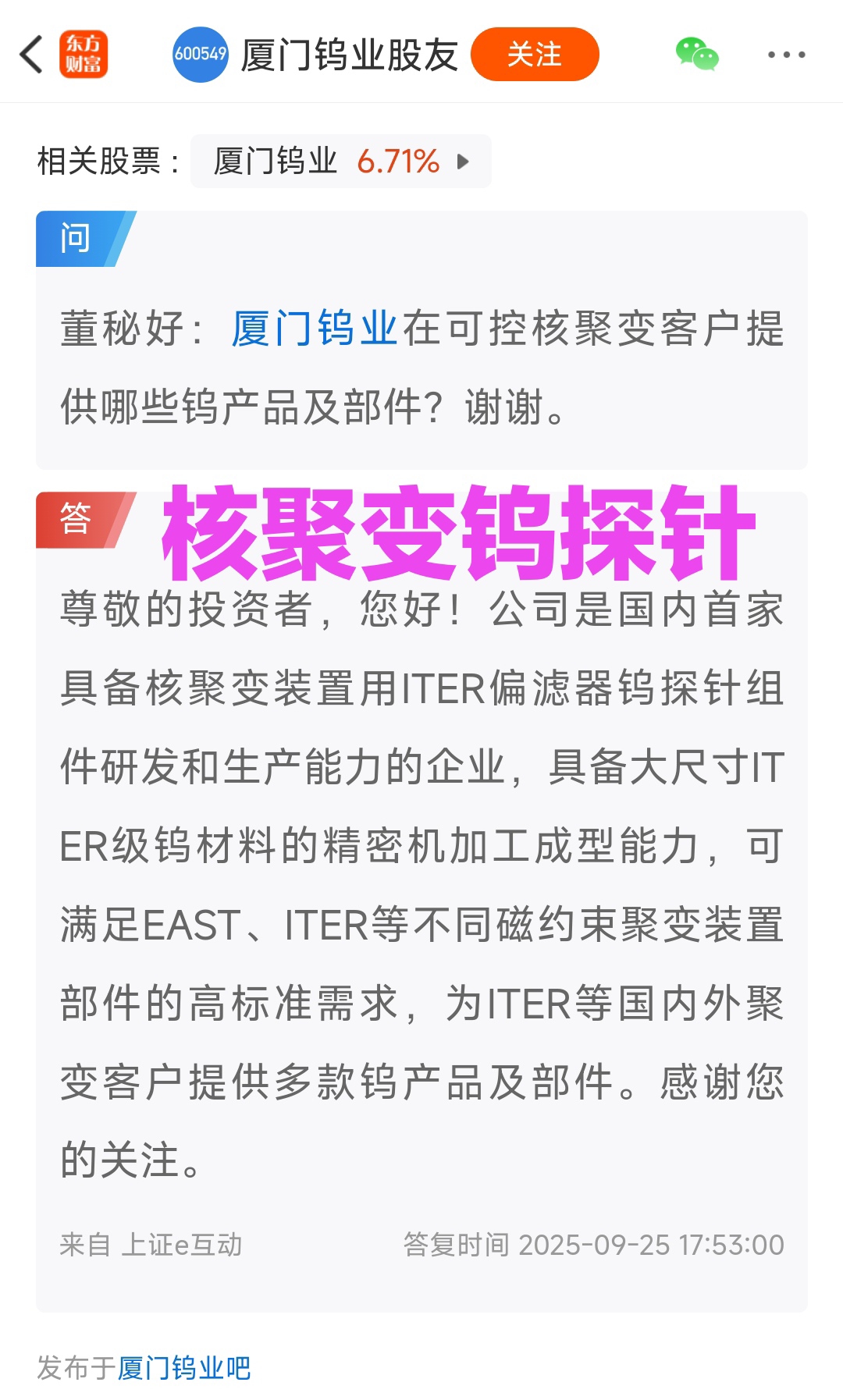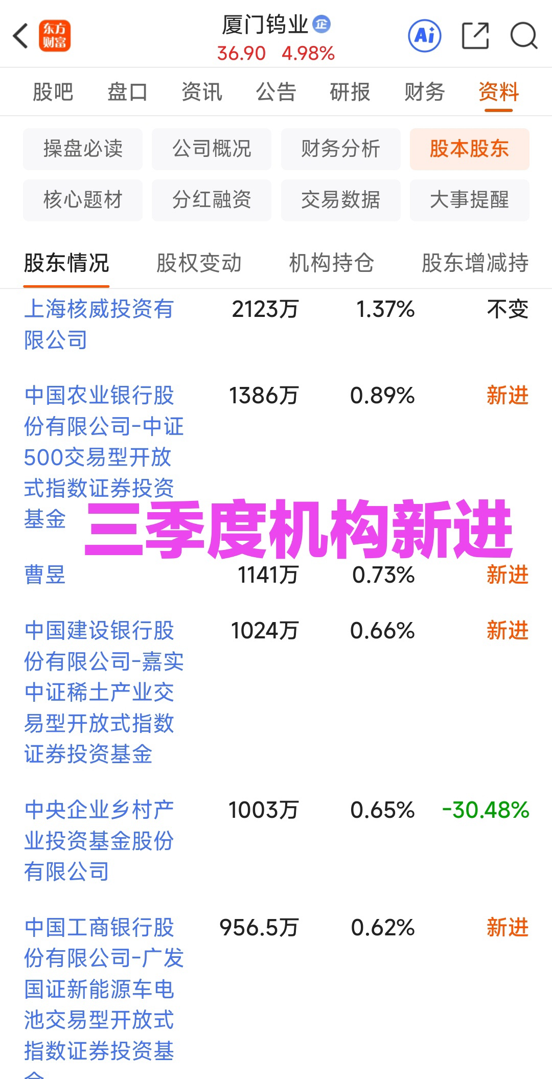 $厦门钨业(SH600549)$ 海峡西岸+钨价翻番+机器人+固态电池+稀土永磁+小金属+军工+无人机+可控核聚变+光伏+Pcb钻针+大湖塘钨矿注入预期,创新高无套牢,主升浪,目标100元。三季报增27%,每股收益1.12元