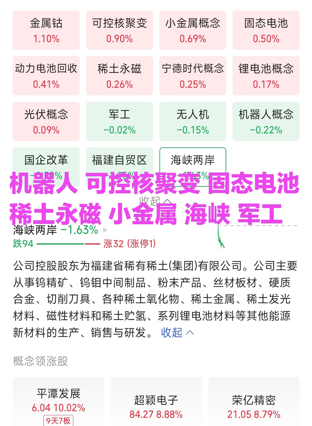 海峡西岸+钨价翻番+机器人+固态电池+稀土永磁+小金属+军工+无人机+可控核聚变
