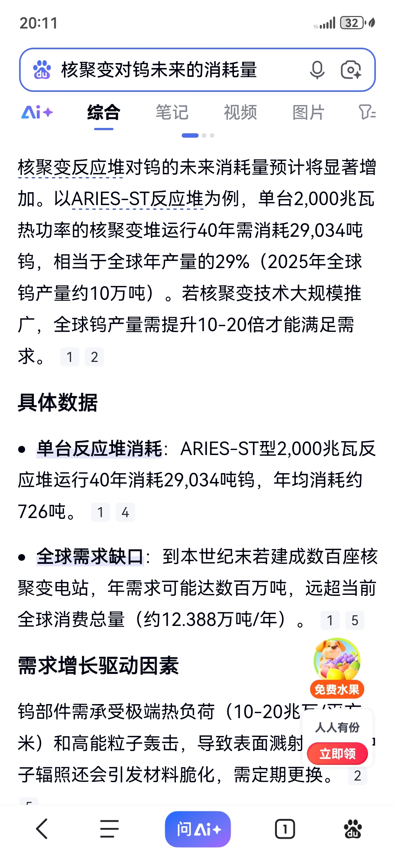 $厦门钨业(SH600549)$ 核聚变真的要这么多钨吗