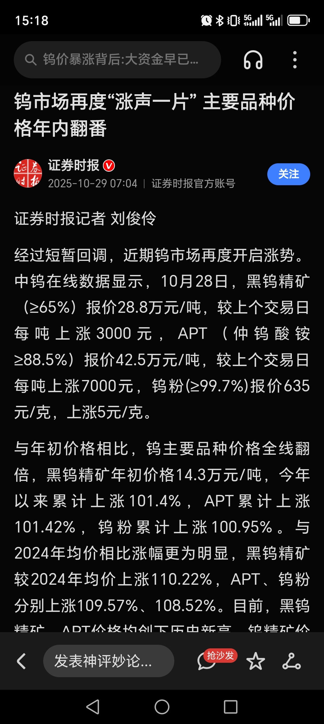 $厦门钨业(SH600549)$ 稀土上涨,厦钨钱景大好