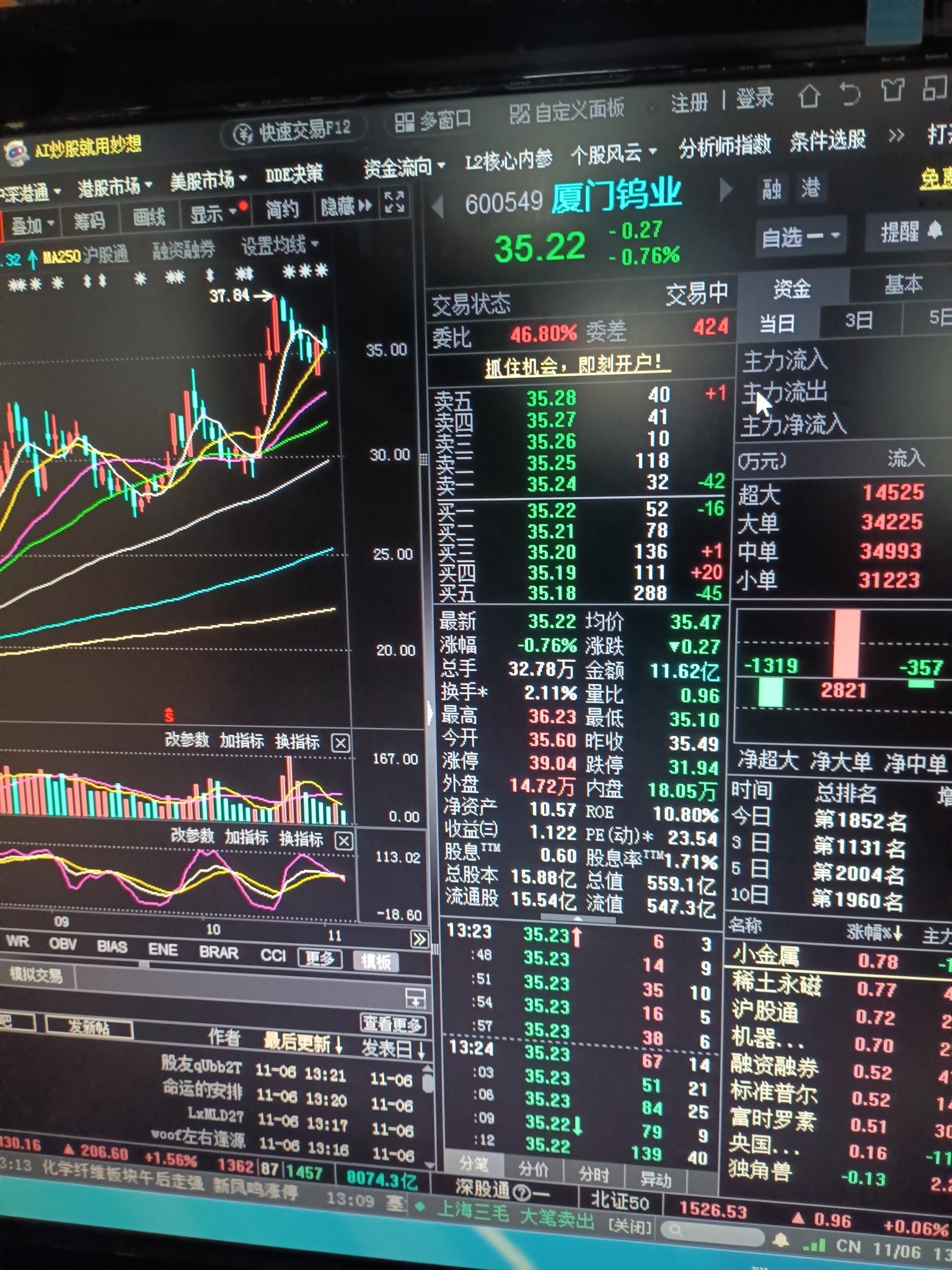 厦门钨业35以上主力在疯狂出逃,散户朋友们千万别当接盘侠。