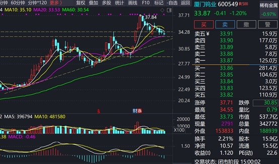 $厦门钨业(SH600549)$ #收盘点评# #炒股日记# #复盘记录# #股市怎么看#