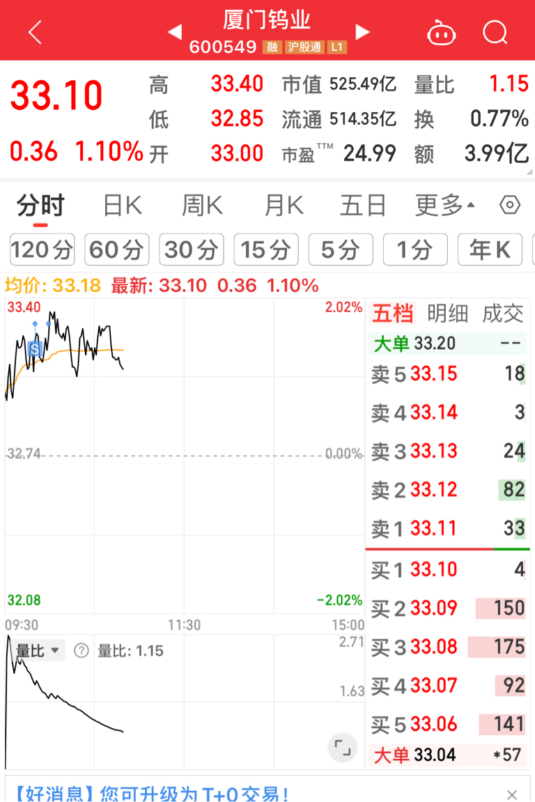 只T在次高位,4毛的单未能成交..等下午了