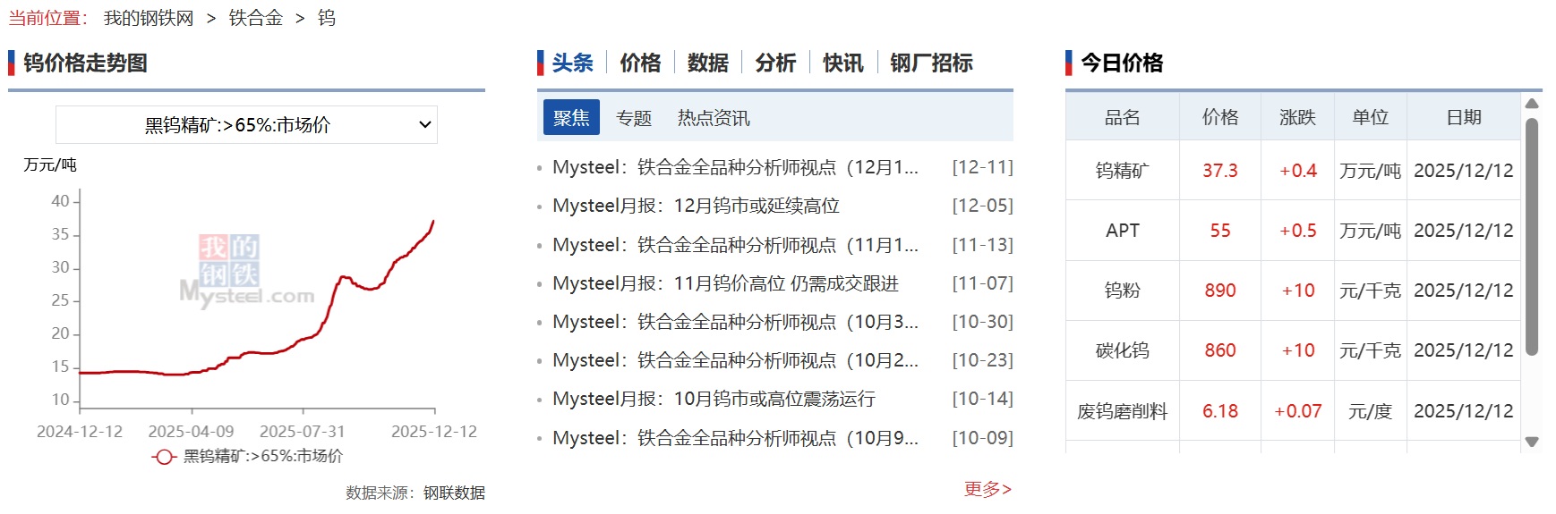 钨价可真是吃了伟哥了,奋勇向上不停歇!今日不出意外突破了37万/吨。达到37.3