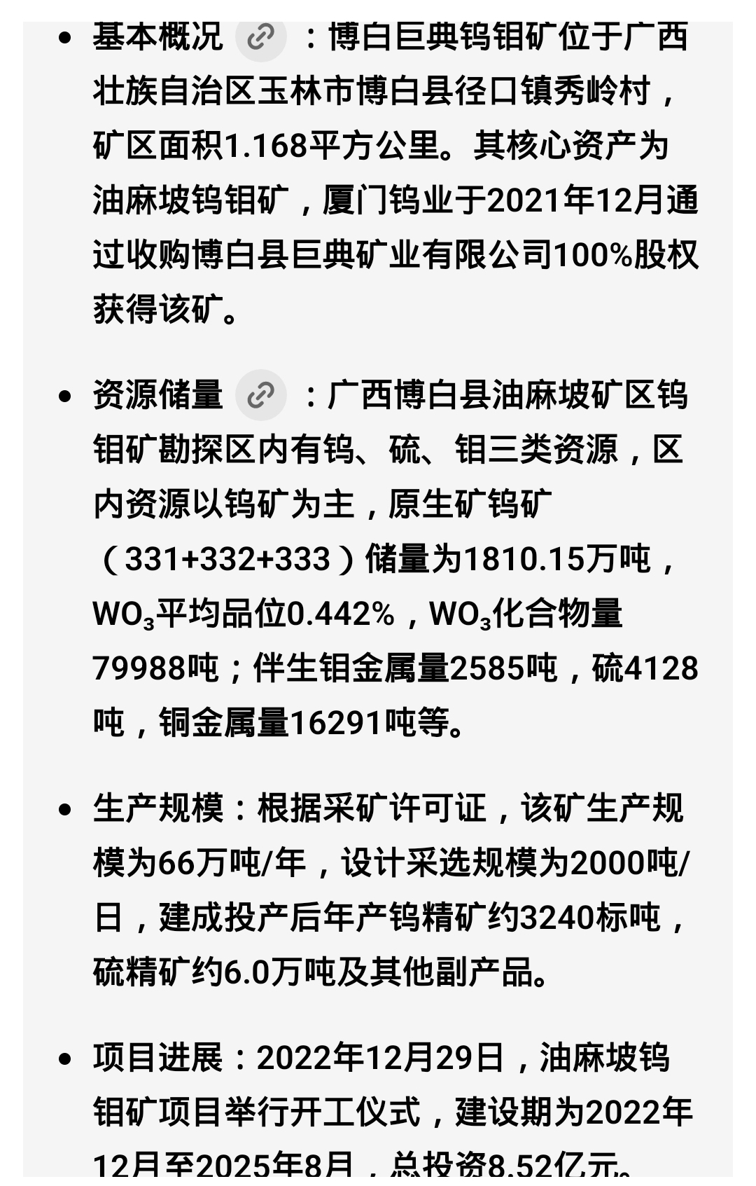 $厦门钨业(SH600549)$ 天天吵什么大湖塘,这个博白巨典才是厦门钨业的王炸,达产后自给率达到75%左右