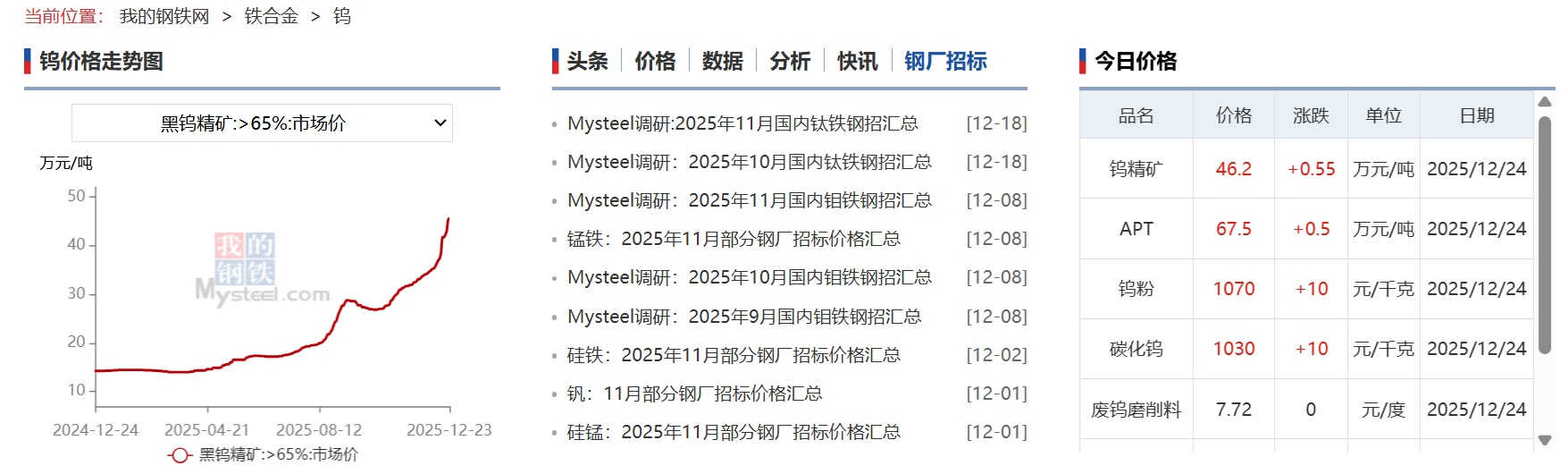 今日钨价继续快速飙升,上方好像毫无压力。最终高点无法估量!