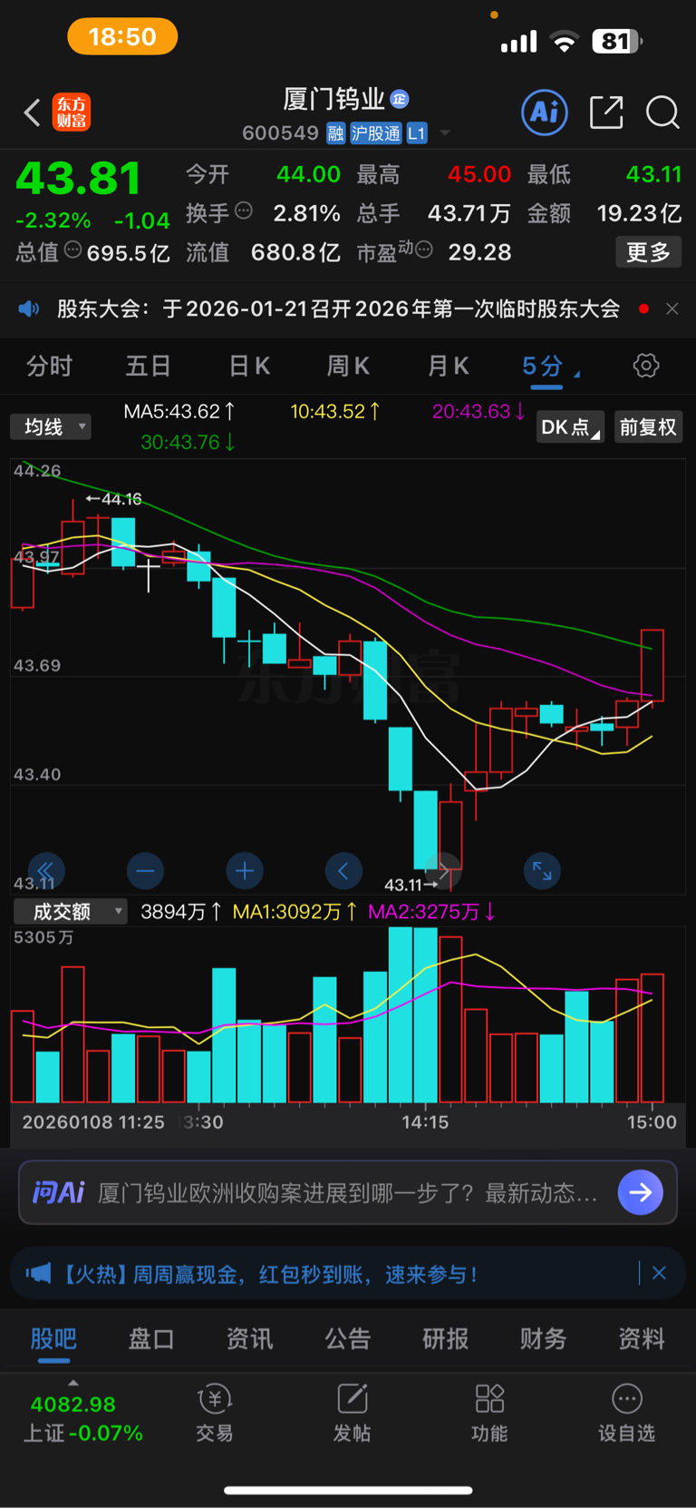 温馨提示: 1.根据《证券法》规定,禁止编造、传播虚假信息或者误导性信息,扰乱证券市场;2.用户在本社区发表的所有资料、言论等仅代表个人观点,与本网站立场无关,不对您构成任何投资建议。用户应基于自己的独立判断,自行决定证券投资并承担相应风险。《东方财富社区管理规定》